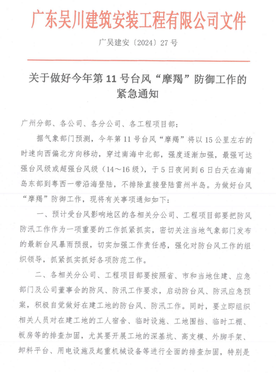 關于做好今年第11號臺風“摩羯”防御工作的緊急通知