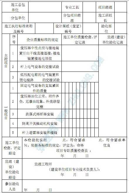 基礎。 “架空線路安裝”按供電區段劃分檢驗批; “桿上電氣設備安裝”按供電區段和庭