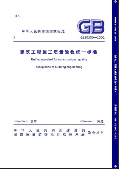 并,組成新的工程質量驗收規范體系,以統一建筑工程施工質量的驗收方法、質量 《建標準和程序。本標準規定了建筑工程各專業工程施工驗收規范編制的統一準則和單 位工程驗收質量標準、內容和程序等;增加了建筑工程施工現場質量管理和質量控 程 制要求;提出了檢驗批質量的抽樣方案要求;規定了建筑工程施工質量驗收中子單